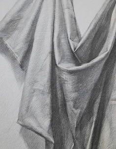 Рисунок физики материала ткани, отражение объема и фактуры за счет штриха.
